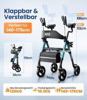 Der Rollator lässt sich einfach zusammenklappen und platzsparend transportieren oder verstauen. Ideal für Zuhause, Reisen oder Arztbesuche. -